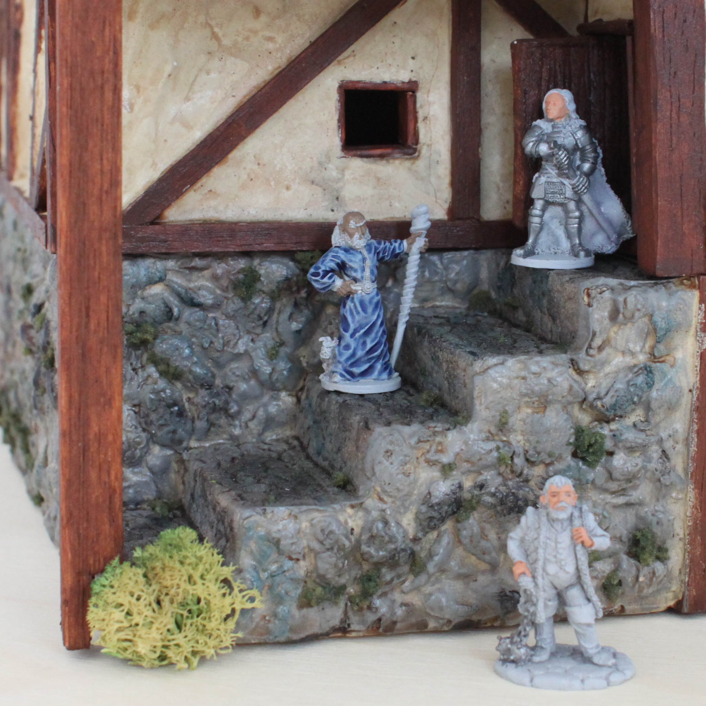 - Die Treppe bietet Platz um Miniaturen darauf zu stellen.